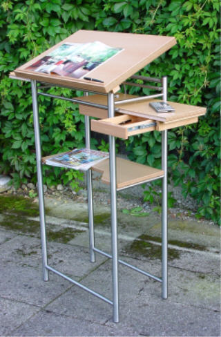 Bei diesem Modell ist die Platte in der Neigung verstellbar und kann somit auch mit Laptop benutzt werden.